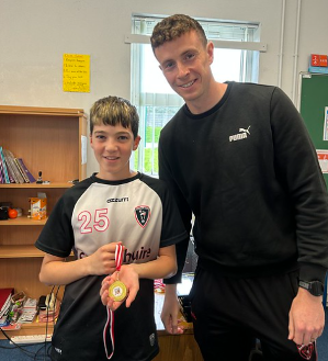 Huge thanks to Kerry goalkeeper Shane Ryan for presenting the medals to our boys team 🏅 Proud winners of the Rural Schools Final! 🙌 Shane kindly took time out of his day to chat with the pupils, sharing his journey and giving them great tips to improve their skills. Here’s a special moment as our captain Charlie receives his medal 👏💪